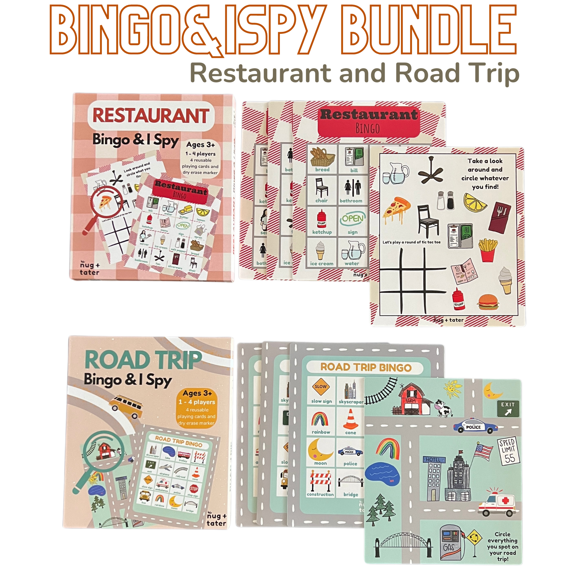 Whether you're on a long road trip or waiting for your meal at a restaurant, this bundle offers endless entertainment that brings laughter and enjoyment to every moment. Make your next adventure unforgettable with the Roadtrip & Restaurant Bingo/iSpy Bundle!
