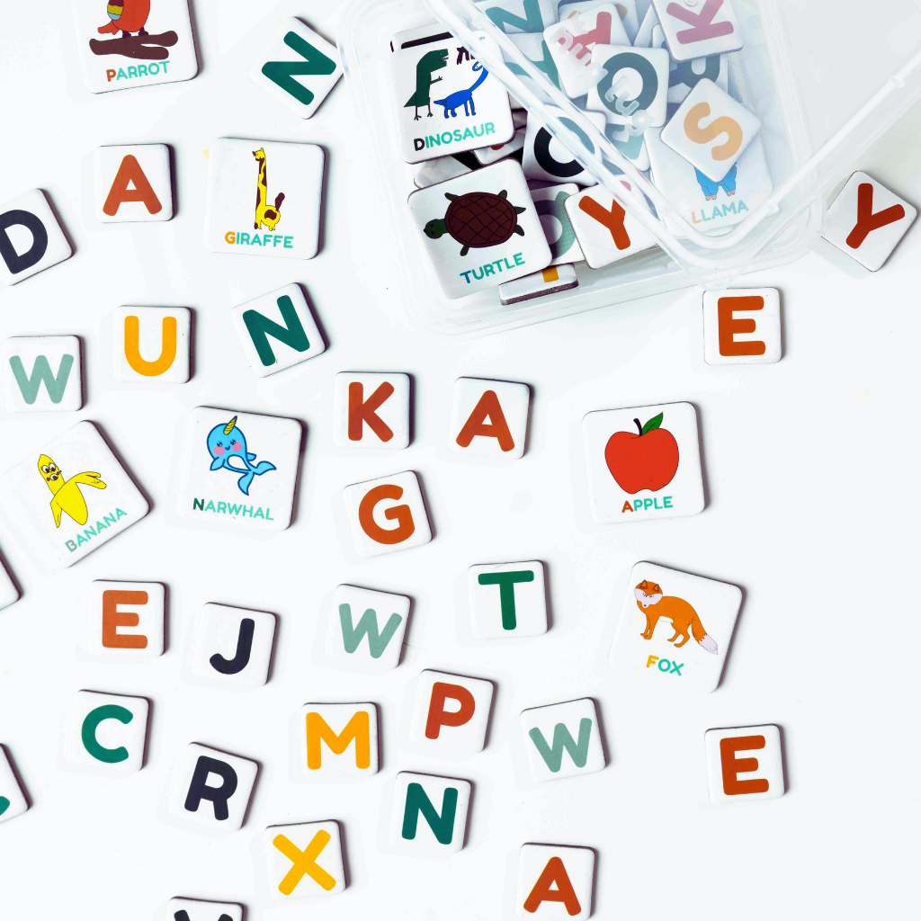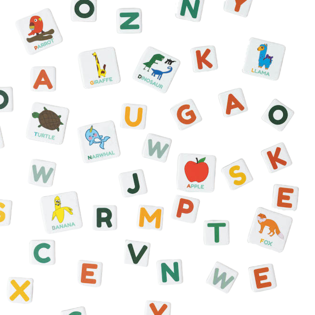 These adorable magnetic tiles contain images and letters. The 26 images were drawn by talented child artists and their artwork was digitized into these cute magnets. This set is perfect to assist young learners with reading words, letter recognition, and fine motor skills.